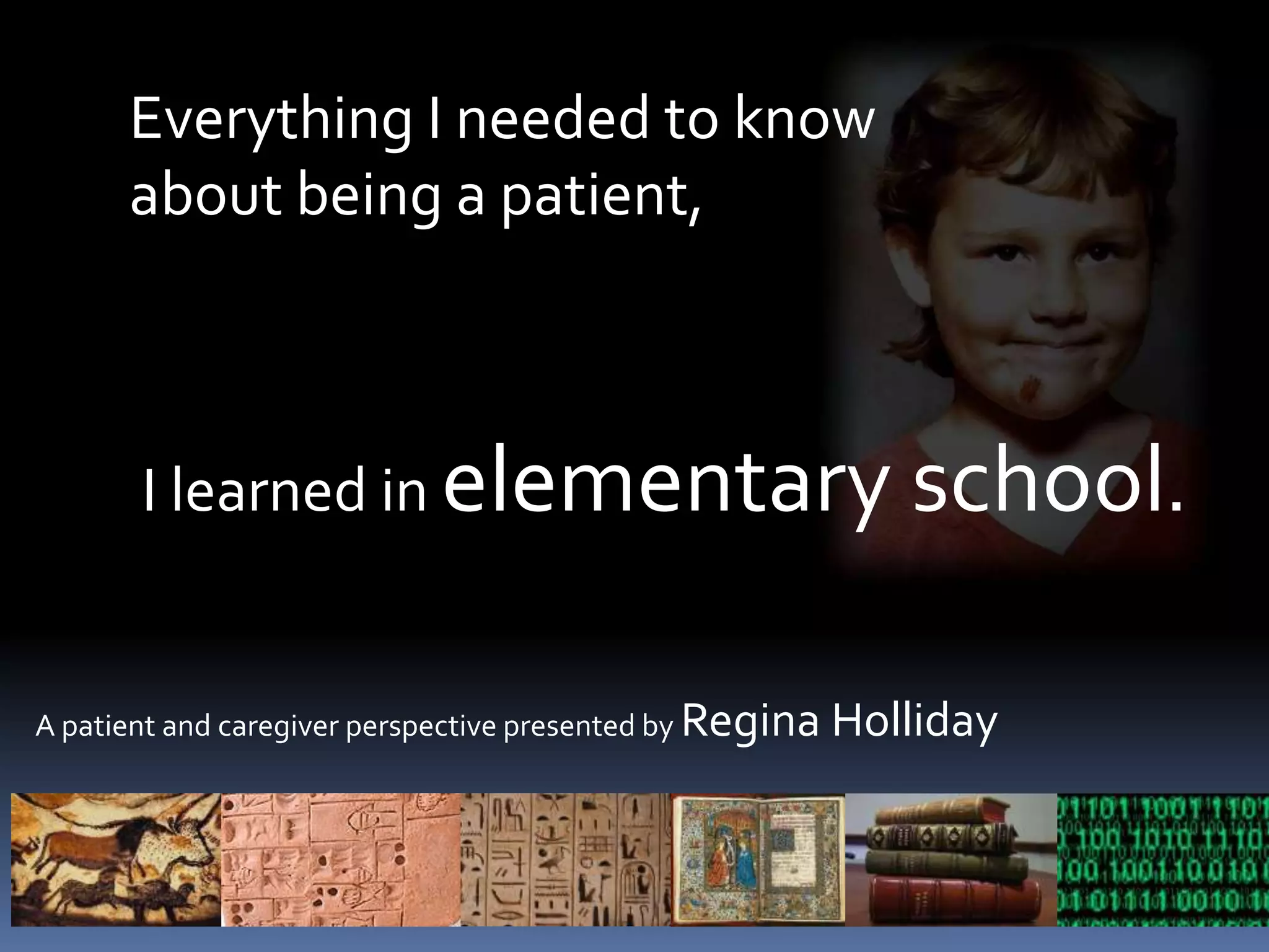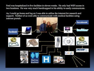 This document tells the story of Regina Holliday and her husband Fred. Fred was diagnosed with kidney cancer in 2009 after months of being in pain. Regina advocated fiercely for Fred's care but faced many obstacles getting information from the hospitals. After Fred passed away, Regina used art and social media to advocate for better patient experiences and information sharing. The lessons Regina learned about speaking up from her childhood have helped her promote change in the healthcare system.