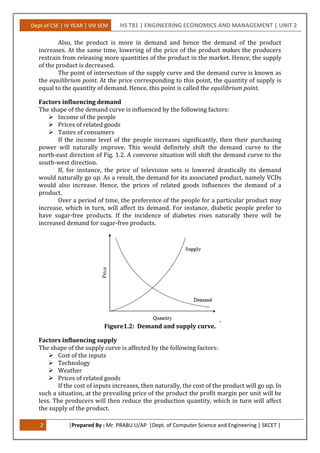 This document provides an overview of engineering economics and elementary economic analysis concepts. It discusses the definition and goals of economics, including the production and distribution of goods and services for human welfare. Key points covered include the law of supply and demand, factors that influence supply and demand, costs and revenues, break-even analysis, and the profit-volume ratio. Elementary economic analysis is introduced as a way to make economic decisions by considering factors like price, transportation costs, availability, and quality when evaluating alternatives. Examples are also provided to illustrate basic economic analysis concepts.