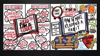 This document summarizes the results of a survey about educators' reading habits and behaviors. It finds that most educators report reading 1-2 books per month or less. This suggests they may not be strong role models for students as readers. The document also notes that most educators are not using social media or other tools to engage with students about books. It recommends that educators set aside time for reading, permit student choice in materials, show interest in student reading, and become role models by developing their own reading plans and goals.