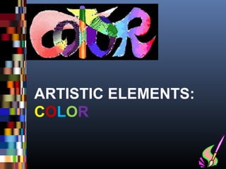 The document discusses color as an artistic element and describes how different colors can create different feelings and emotions. It defines color and explains color theory concepts like hue, value, saturation, primary colors, secondary colors, tertiary colors, and color harmonies including monochromatic, complementary, split complementary, triadic, and analogous color schemes. Color is one of the most powerful artistic elements and understanding uses of color is crucial in effective composition and design.