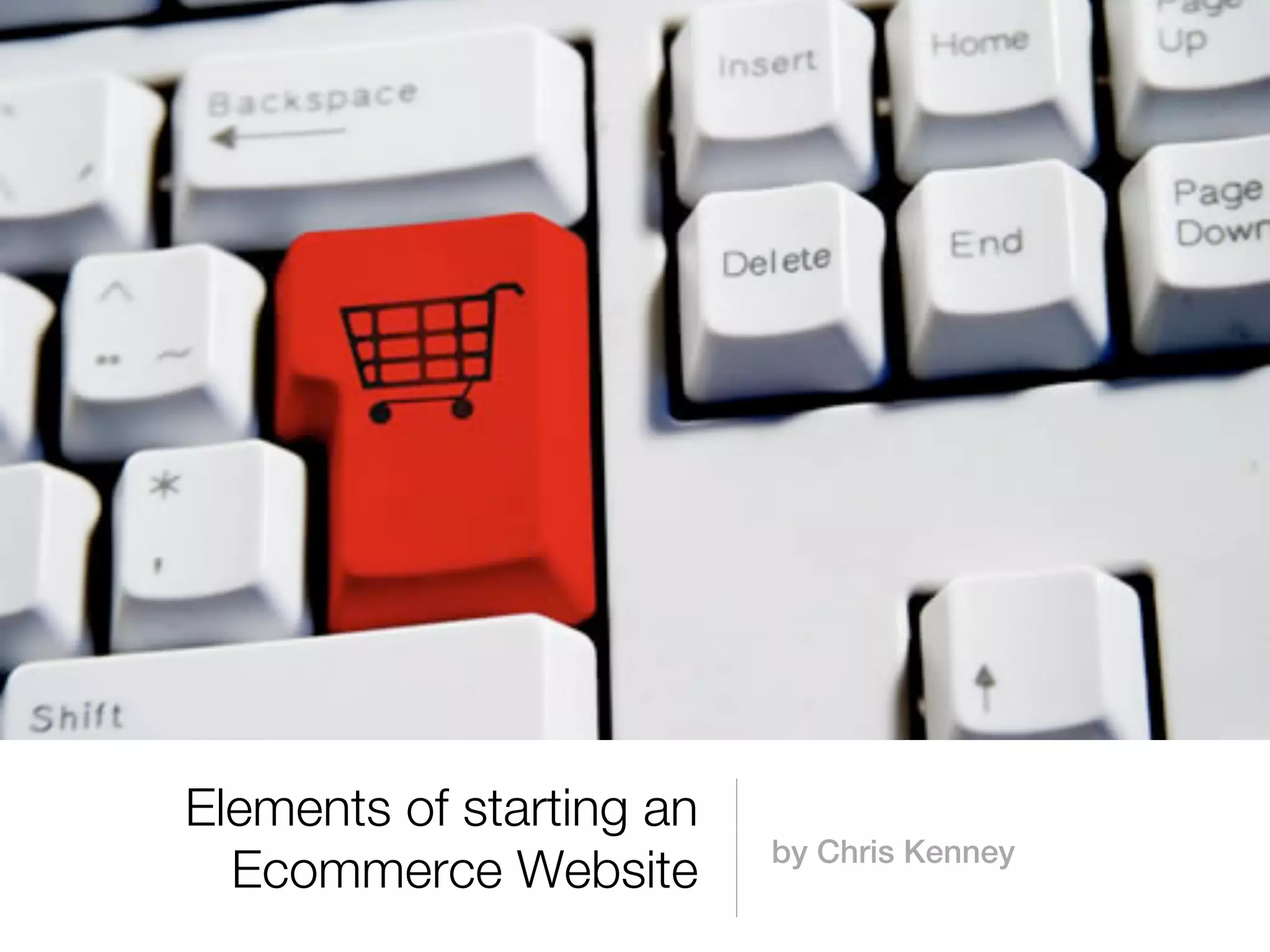 The document discusses the key elements to consider when starting an ecommerce website. It covers determining the level of ecommerce needed, choosing a shopping cart type, identifying the target audience, designing the site, setting up policies and payments, marketing strategies, and more. The level of ecommerce can range from a basic brochure site to a full commerce site integrated with existing systems. Key decisions include choosing a shopping cart, designing for the audience, setting policies, payments, taxes, hosting, security, and marketing.