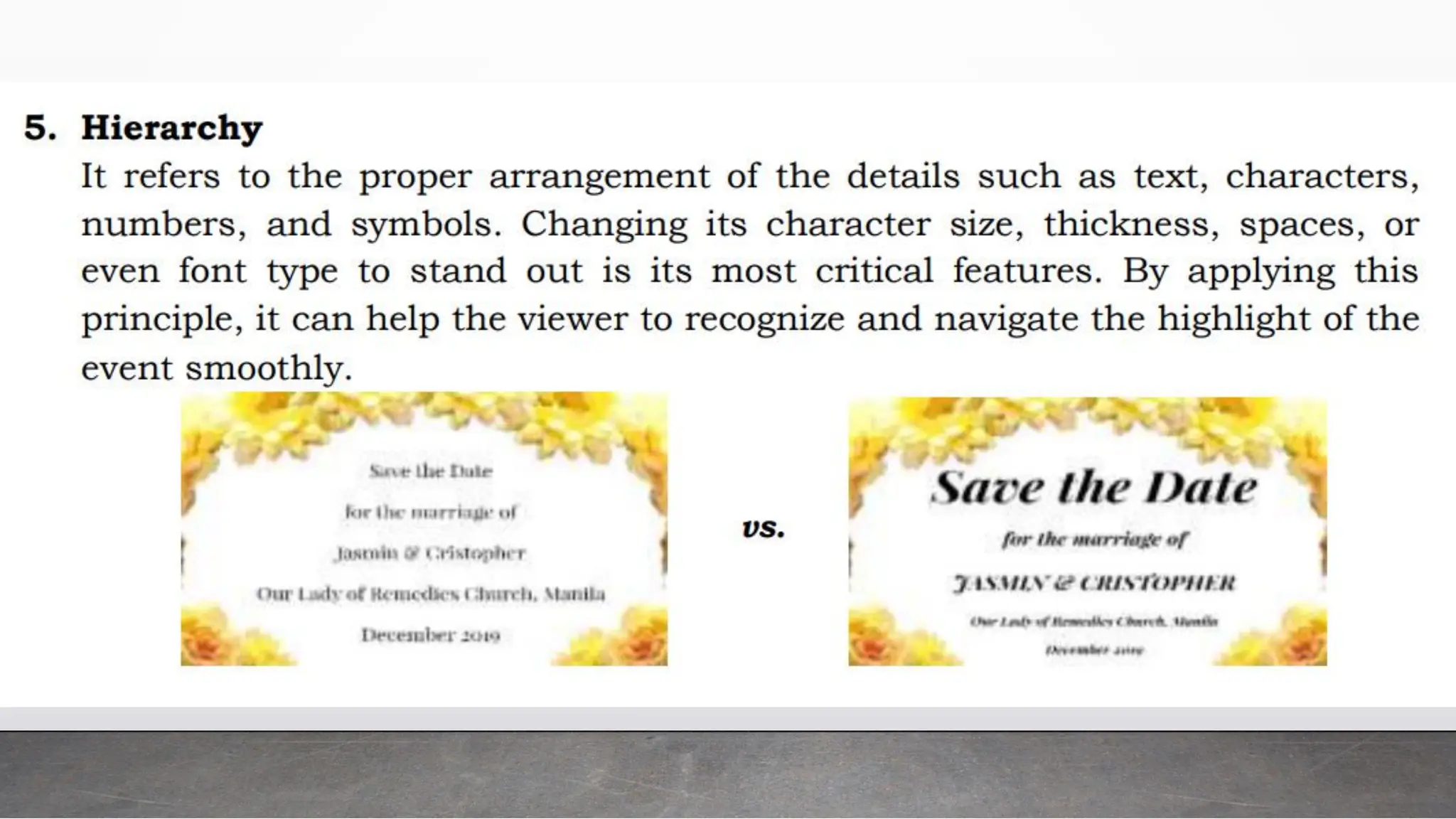▪ Varying the size of objects, shapes, or lines in sequence (small to large).