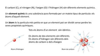 El carboni (C),el nitrogen (N), l‘oxigen (O) i l‘hidrogen (H) són diferents elements químics.
