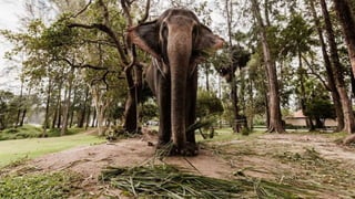 The document provides an overview of African elephants, the largest land mammals, weighing up to 13,000 pounds and distinguished by their large ears and tusks. It highlights their habitat, diet, social behavior, and the threats they face from poaching for ivory despite legal protections. Additionally, it contrasts them with Asian elephants, noting differences in size, ear shape, and tusk presence.