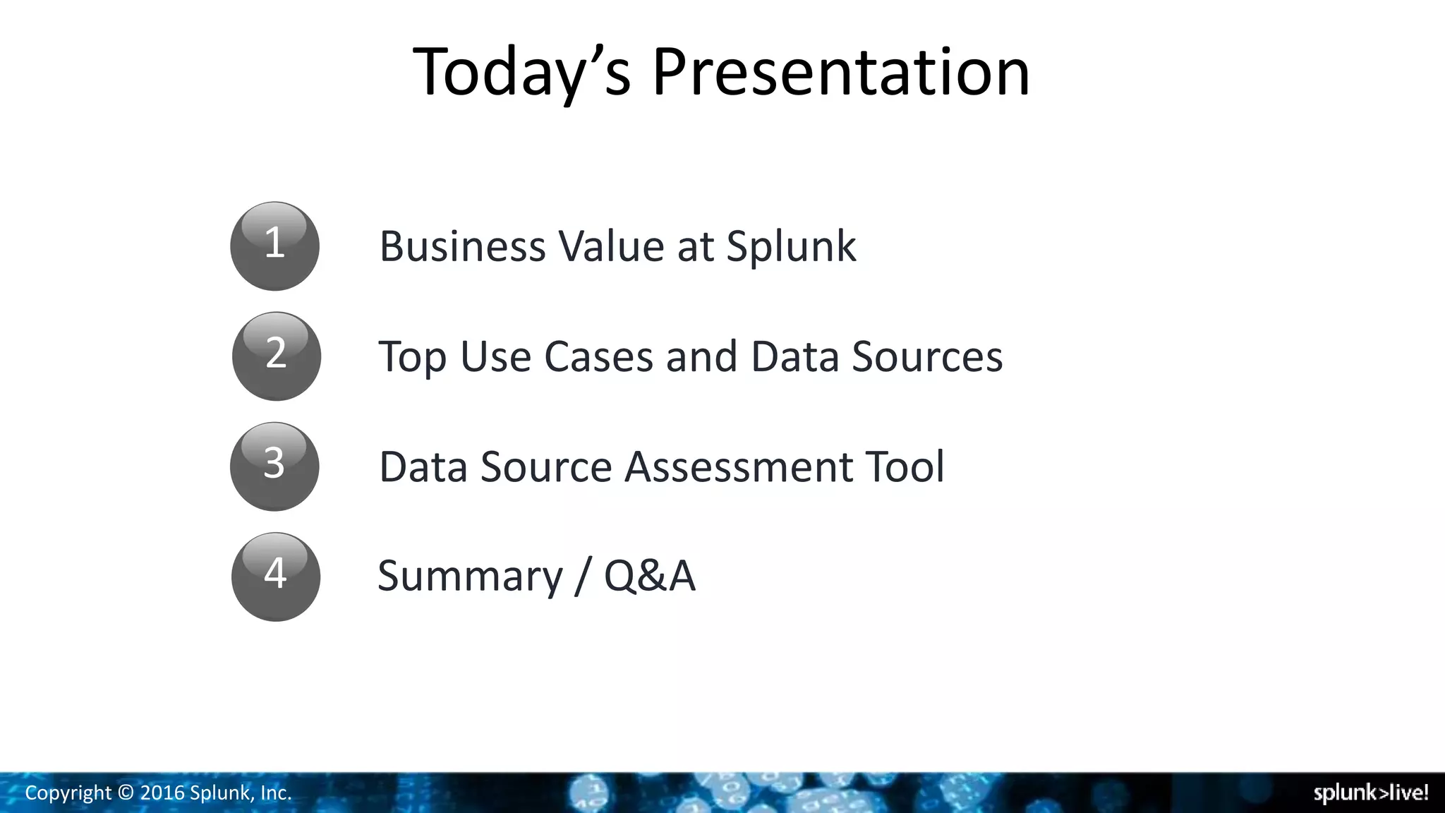This document discusses how to better understand the value of a Splunk deployment through assessing data sources. It presents a data source assessment tool to map data sources to use cases and organizational groups to identify opportunities. The tool shows which data sources are indexed and overlap between groups. It aims to maximize benefits from machine data by supporting business objectives and enabling broader impact.