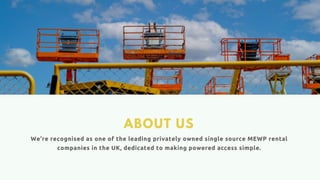 Aerial Platforms Ltd is a leading UK rental company specializing in mobile elevating work platforms (MEWPs), emphasizing the advantages of hybrid models which include lower operating costs and zero emissions in electric mode. Their fleet caters to various sectors, particularly automotive and airports, with a focus on reliability and fast service. The company prioritizes environmentally friendly solutions and efficient operation for indoor and outdoor tasks.