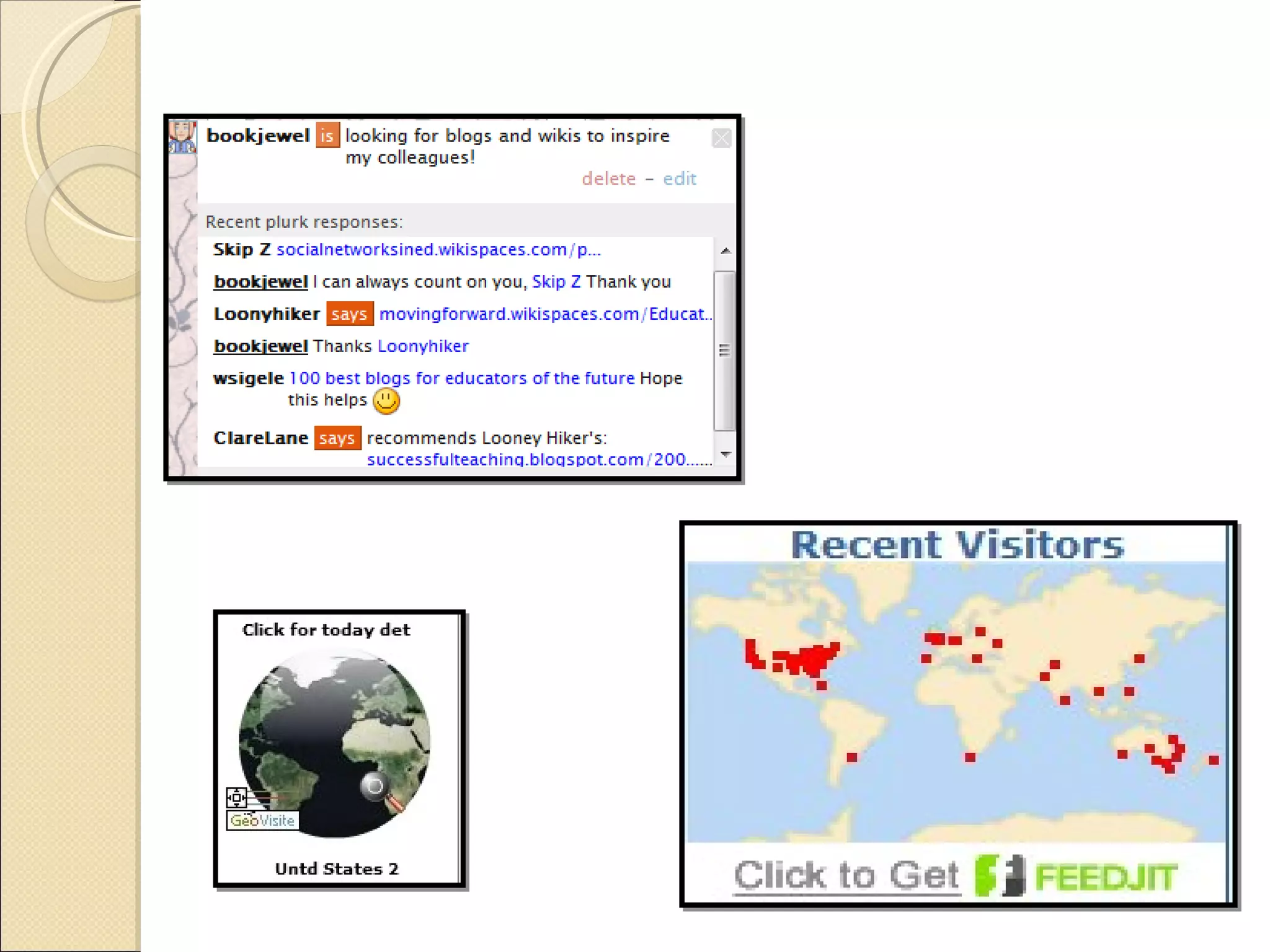 The document lists various web tools and resources for teaching and learning, including blogs, multimedia tools, social bookmarking sites, collaborative writing tools, and presentation tools. It encourages connecting with other educators through groups on Diigo and a wiki to explore ideas for using Web 2.0 in teaching. URLs are provided for many of the tools mentioned.