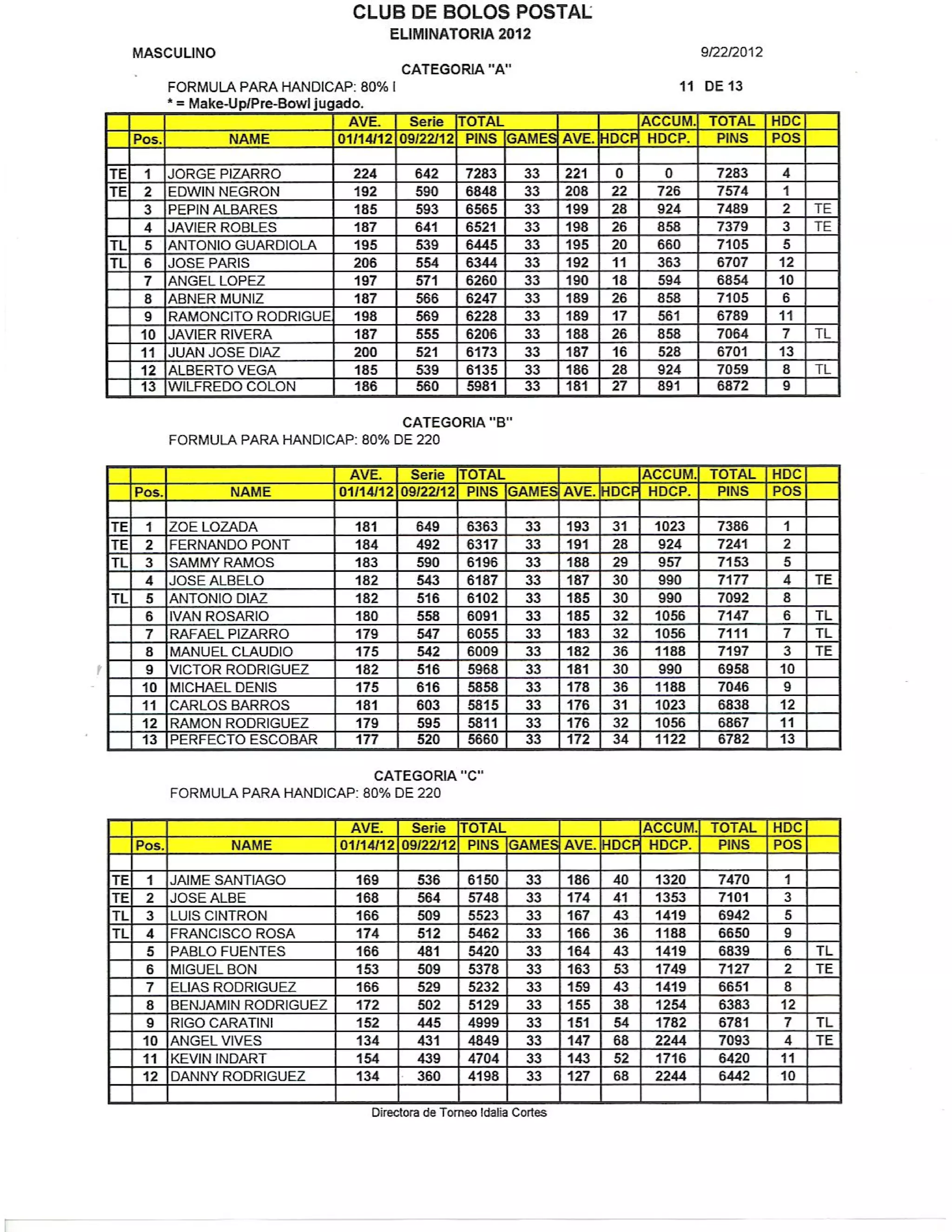 League standing report 09.22.2012