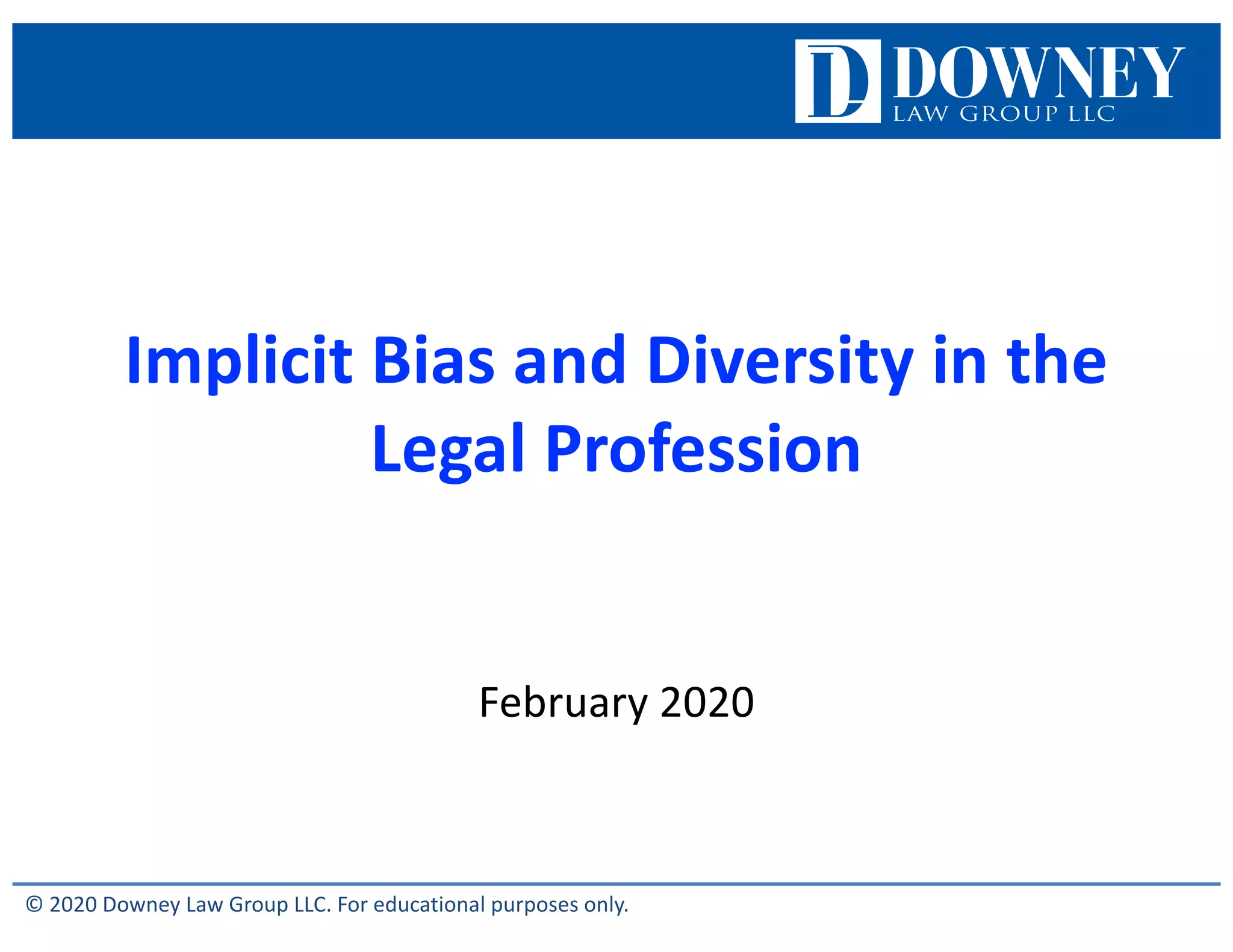 The document provides an overview of implicit bias and diversity in the legal profession. It discusses implicit bias as attitudes or stereotypes people hold without conscious awareness. Studies show implicit bias can negatively impact legal outcomes at various stages from criminal trials to law firm evaluations. The document also discusses the importance of diversity in law and challenges in achieving it. It outlines initiatives like the Mansfield Rule and Intel Rule that aim to increase diversity among law firm leadership and outside counsel. Overall, the summary highlights that implicit bias is prevalent in legal systems and achieving diversity in the profession remains an ongoing challenge.