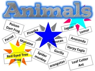 In an average year in a tropical rain forest, the climate is very humid because of all the rainfall, which amounts to about 250 cm per year. The forests of Central Africa are home to more than 8,000 different species of plants. Rainforests are found mainly around the equator and hold many varieties of plants and animals, with vegetation growing in layers and the bottom layers receiving little sunlight.