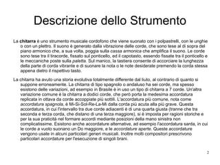 La chitarra è uno strumento musicale cordofono, suonato con polpastrelli o plettro, il cui suono è prodotto dalla vibrazione delle corde. Esistono vari tipi di chitarre, incluse la chitarra classica e la chitarra elettrica, ognuna con strutture, materiali e accordature differenti, adattate a diversi generi musicali. La chitarra elettrica amplifica il suono tramite pick-up, superando le limitazioni delle chitarre acustiche in contesti musicali più complessi.