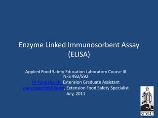 This document provides an introduction to enzyme-linked immunosorbent assay (ELISA), covering its basic principles, procedures, advantages, and applications. ELISA is an antibody-antigen based assay developed in 1971 to detect the presence and quantify concentrations of antigens, antibodies, and other proteins. It works by utilizing antibodies and enzyme-linked substrates to produce a detectable color change in direct proportion to the presence of an antigen or antibody in a sample. Key advantages of ELISA include its speed, sensitivity, specificity, ability to process many samples at once using small sample sizes, and production of easy-to-read colorimetric results. ELISA kits now exist for detecting a wide range of targets like viruses, hormones, toxins, allerg