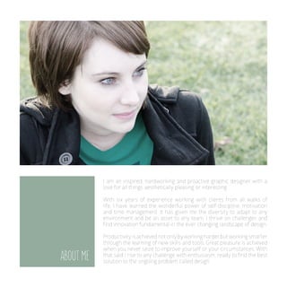 Elise Carmody is an experienced graphic designer with over six years of experience working with clients from various industries. She has strong skills in design programs like Photoshop, Illustrator, and InDesign, as well as branding, digital marketing, print design, and web design. Elise prides herself on being a hard worker who thrives on challenges and continuous self-improvement. She has worked as a creative director for her own company as well as for large clients like Designwave and Louie Daniele Diamond Corporation.