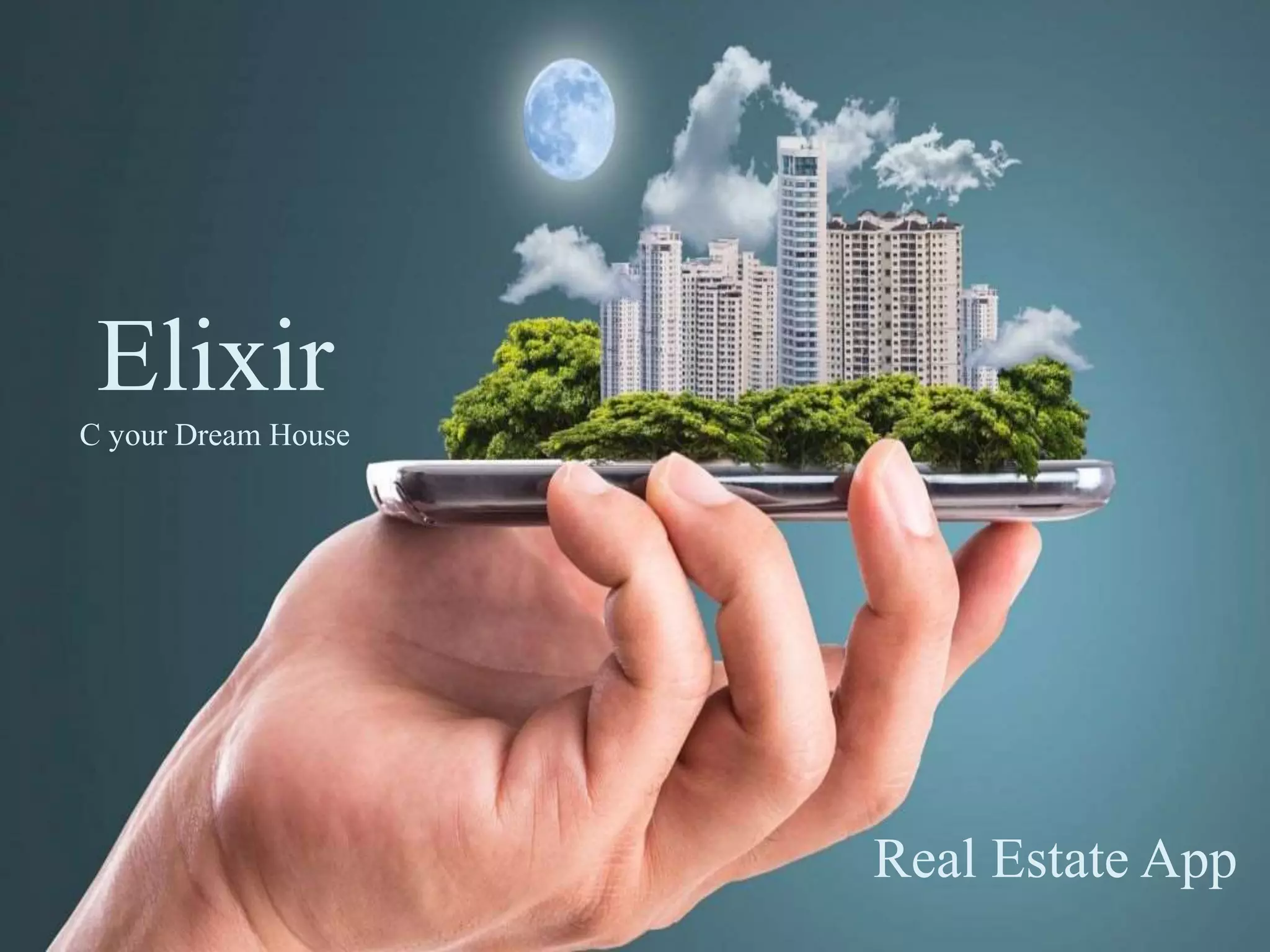 This document describes a real estate app called Elixir that aims to solve problems faced by both home sellers and consumers. For sellers, it is difficult to effectively advertise properties through photos alone and visit each site with customers. For consumers, text descriptions of apartments provide little visualization. The app allows users to view accurate 3D augmented reality models and interior arrangements of properties with a single button touch, as well as walkthroughs. Future enhancements will allow texture, furniture, and interior customization without physical markers. The team developing Elixir includes members from Unity Technologies, X-Design Ventures, and VNR VJIET. Collaboration with these organizations will provide technology and skills to innovatively turn knowledge into customer-focused products