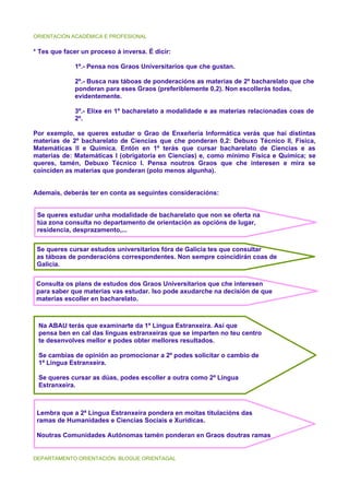 para saber que materias vas estudar. Iso pode axudarche na decisión de que