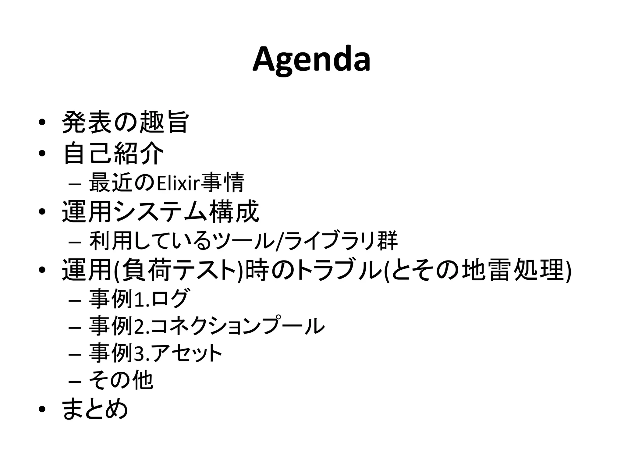 運用(負荷テスト)時のトラブル • Elixirの開発/本番運用を約1年程やってきて、 地雷はそれなりに踏み抜いてきました • 今回は特に –