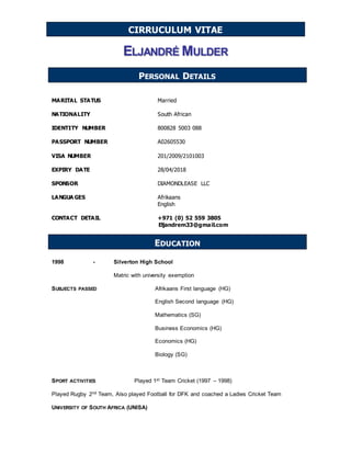 Eljandré Mulder is a South African national currently residing in Dubai, UAE. He has over 15 years of experience in fleet management, marketing, and systems analysis roles. He is currently employed as the Fleet Distribution and Marketing Manager at DiamondLease LLC in Dubai, where he oversees all aspects of their fleet of 9,000 vehicles. Previously he has held roles at Fleetpro, Ford Motor Company, American International Group, and the Road Accident Fund in South Africa.