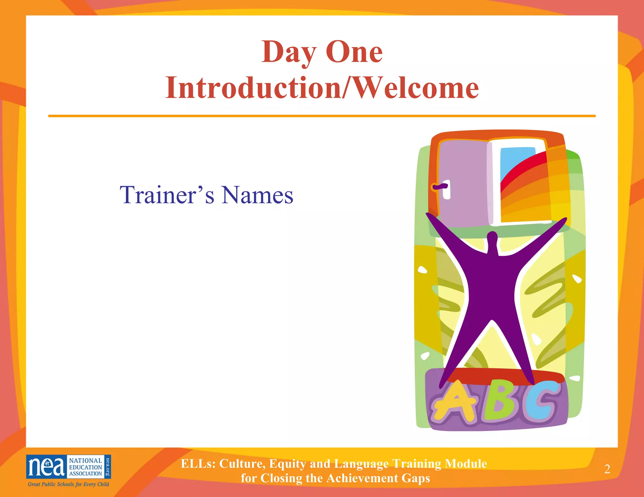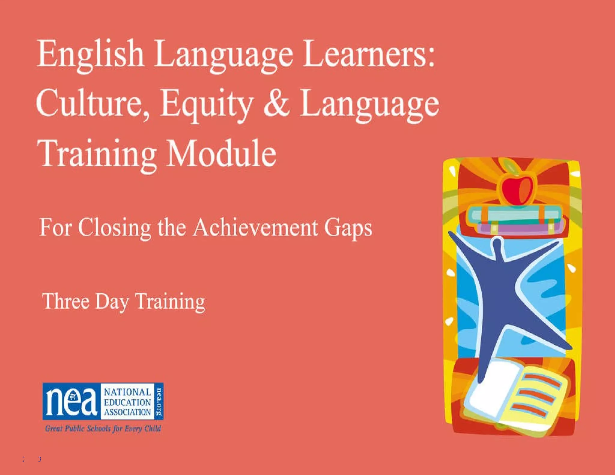 This document summarizes a three-day training for educators on teaching English language learners. Day One covers culture and equity issues, language acquisition theories, and their implications for classroom practices and student achievement. Participants explore how their own beliefs and behaviors impact English learners. Day Two applies language acquisition stages to development and bridges theory to classroom conditions. Day Three focuses on applying language development theory to instructional practice and lesson planning.