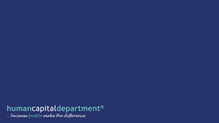 The document provides information about Human Capital Department, an HR consulting firm. It introduces the core team members and their backgrounds. It also discusses the company's values, services, experience in the not-for-profit sector, and an example of an HR audit and recommendations provided to a housing charity client.