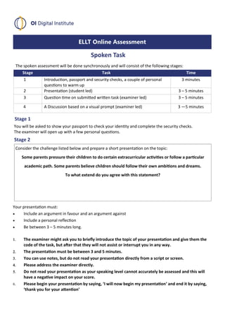 4. Discussion led by examiner based on a visual prompt (3-5 minutes)