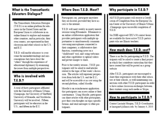 This document provides information about the Transatlantic Educators Dialogue program and how to use the Elluminate online collaboration platform. It outlines the participant interface for Elluminate including tools for whiteboarding, audio, chat, selection, polling and sharing resource materials. It also provides links for user guides, training sessions and technical support for Elluminate.