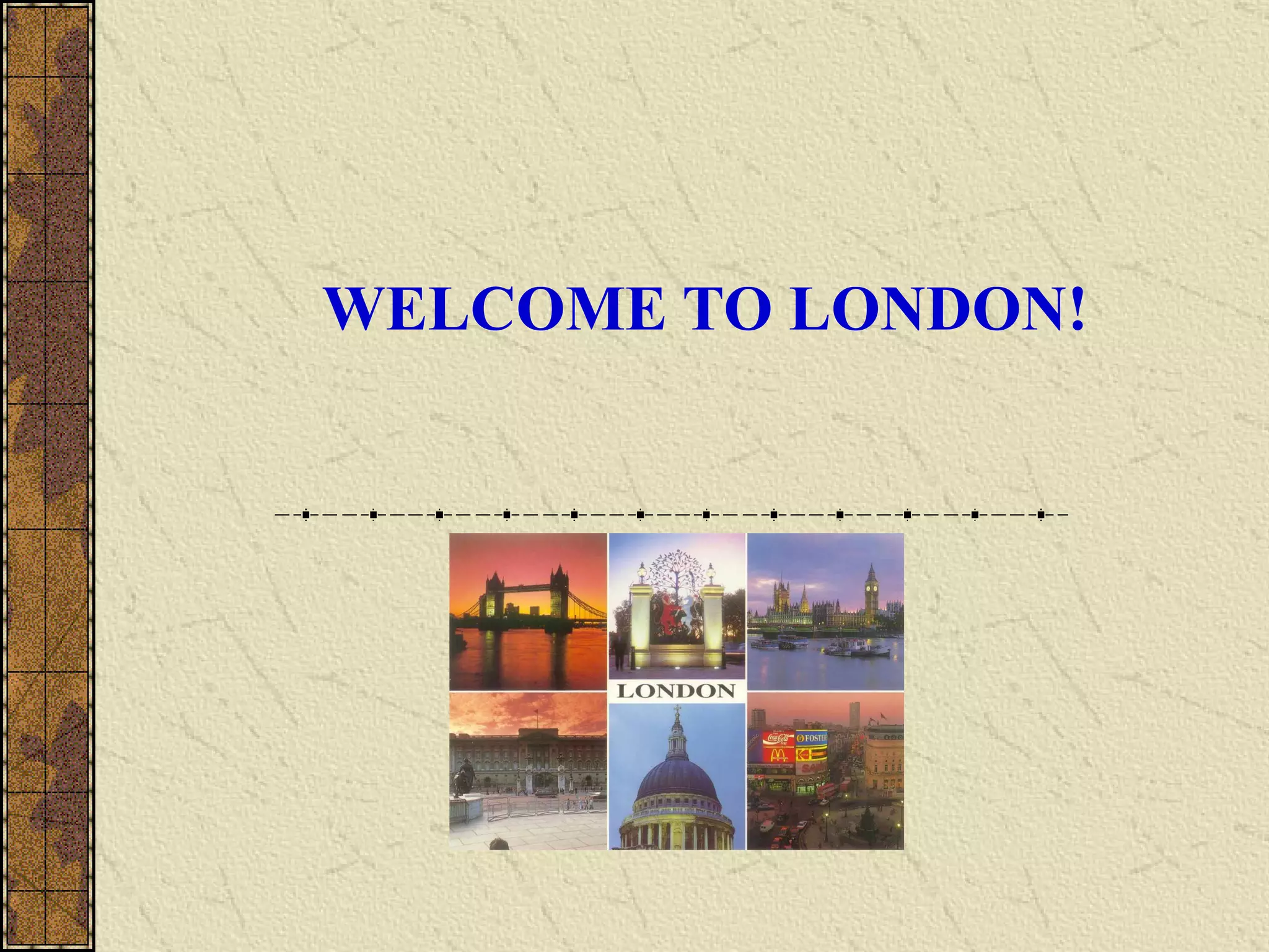This document provides information about several famous London landmarks and attractions. It discusses Trafalgar Square and the Christmas tree gift from Norway that is displayed there. It then mentions Buckingham Palace as the Queen's home, and provides details about the Queen and her family. Finally, it briefly outlines some other major London sites like Big Ben, the Tower of London, Tower Bridge, St. Paul's Cathedral, and double decker buses.