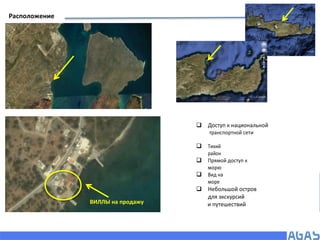 Документ посвящен продаже вилл в Элунде, Греция, с акцентом на их характеристики и расположение. Виллы предлагают доступ к частному пляжу, собственному причалу и возможностям реконструкции. Также представлена информация о планировке зданий и площади земельного участка.