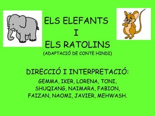 ELS ELEFANTS I ELS RATOLINS (ADAPTACIÓ DE CONTE HINDI) DIRECCIÓ I INTERPRETACIÓ: GEMMA, IKER, LORENA, TONI, SHUQIANG, NAIMARA, FABION, FAIZAN, NAOMI, JAVIER, MEHWASH.