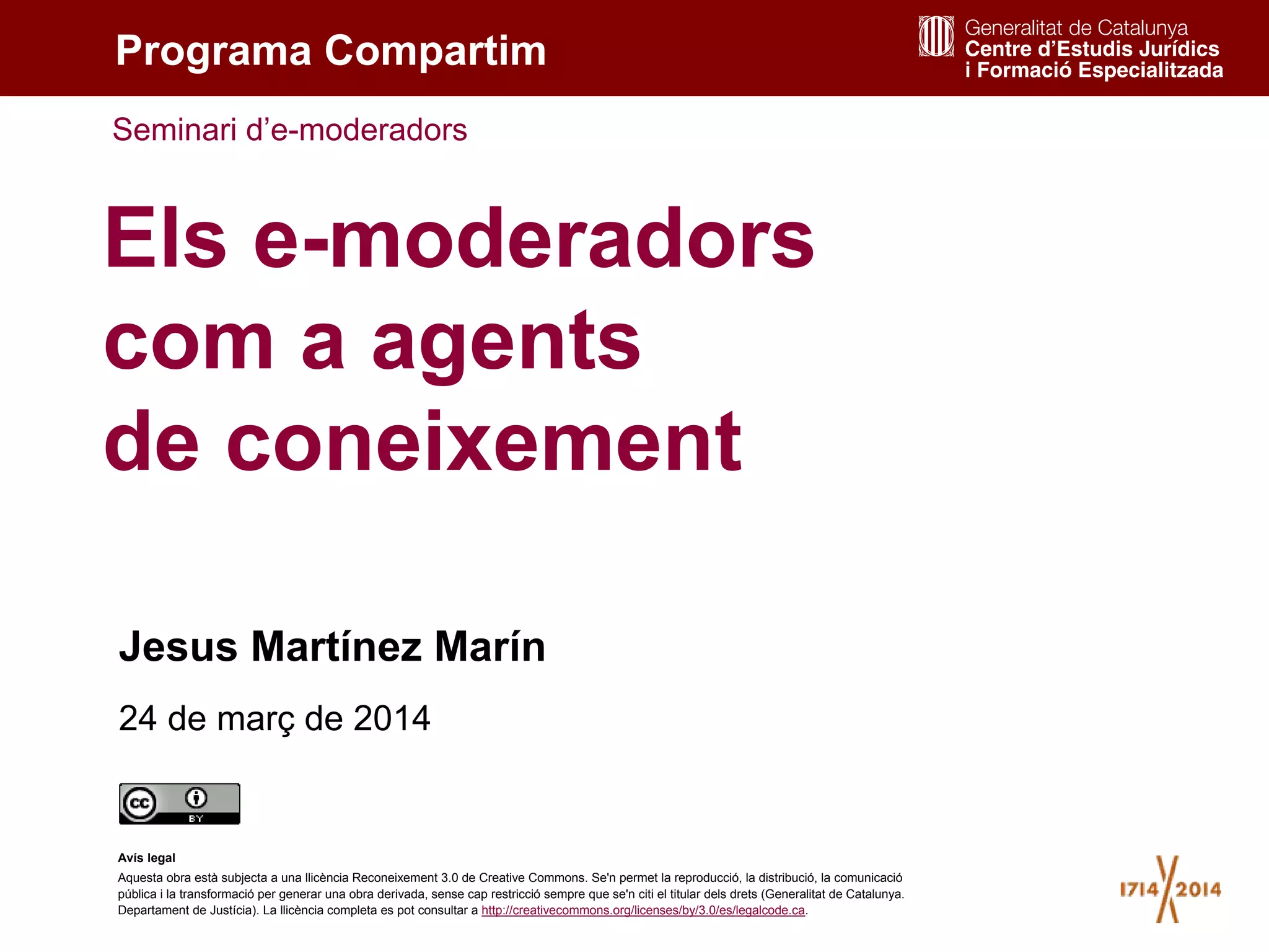 Els e-moderadors com a agents de coneixement. Jesús Martínez