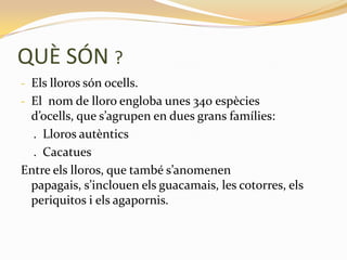 -La principal característicacuriosa dels lloros és la seva