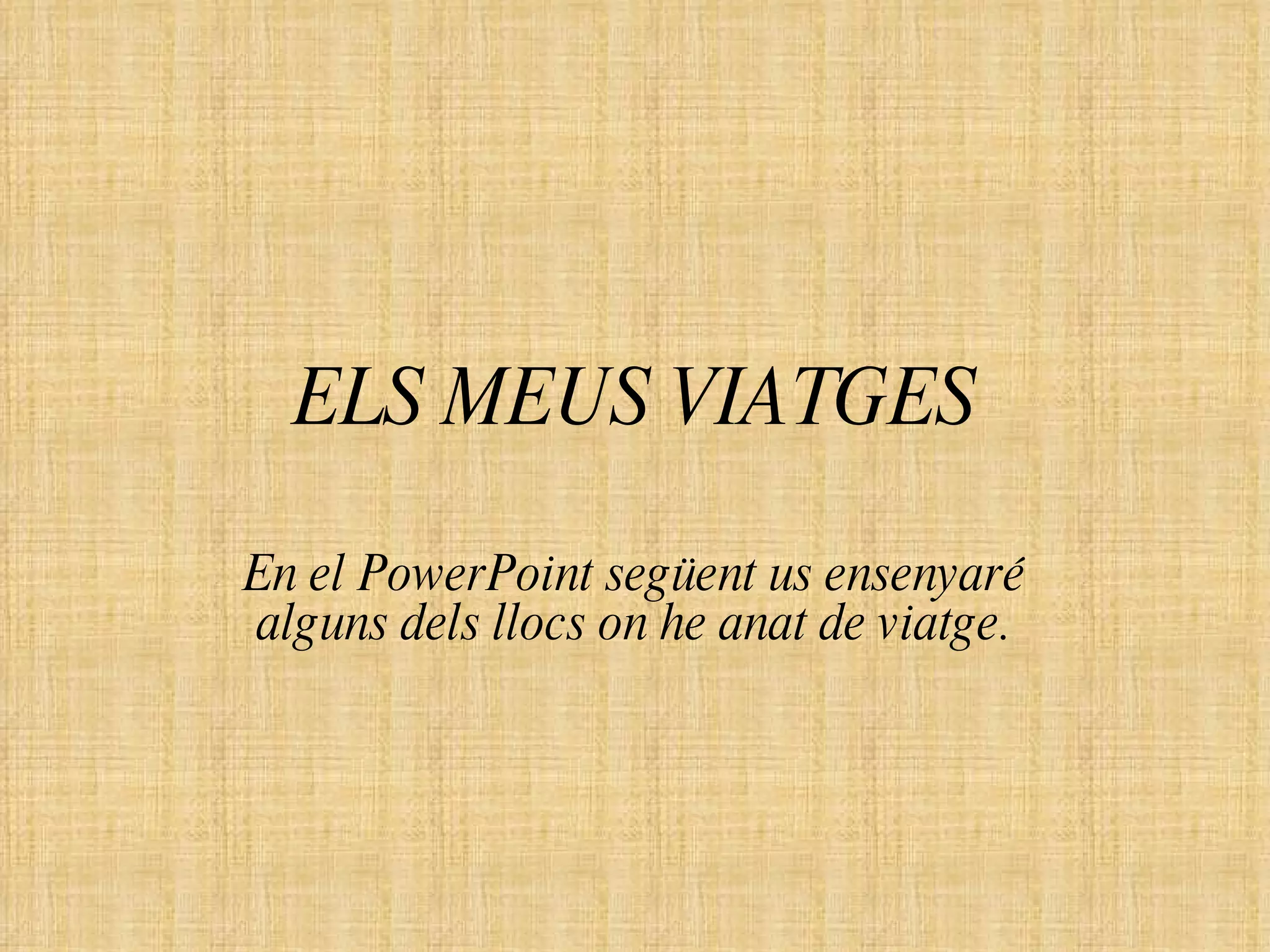 ELS MEUS VIATGESEn el PowerPoint següent us ensenyaré alguns dels llocs on he anat de viatge.