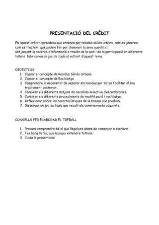 PRESENTACIÓ DEL CRÈDIT