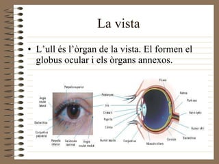 L’ull és l’òrgande la vista. El formen el globus ocular i els òrgans annexos. La vista