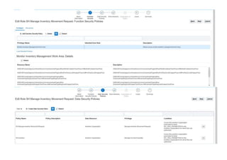 Roles determine user access to functions and data in Oracle Applications Cloud. Roles are arranged hierarchically to reflect lines of authority and responsibility. A user's access is defined by their roles in these hierarchies. Role-based security controls which users can access what data and functions. Roles group permissions and users are provisioned roles to allow access to only the appropriate data and functions.