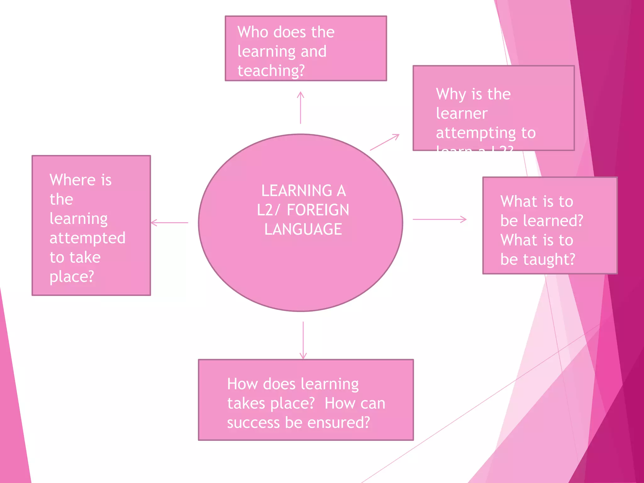 This document discusses the foundations of language teaching from sociolinguistic and psycholinguistic perspectives. It addresses what a language teacher needs to understand, including the nature of language and how people learn and teach languages. Language is defined as a systematic set of symbols used for communication within a culture. Learning involves acquisition, retention through memory, and a change in behavior. Teaching guides and facilitates learning by setting conditions for it. Theories of language and learning have evolved from behaviorist to cognitive to generative frameworks.