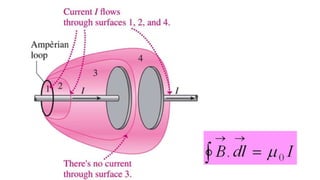 Maxwell developed a theory that unified electricity and magnetism and predicted electromagnetic waves. He corrected Ampere's law by including displacement current, which accounts for changing electric fields. Displacement current exists due to changing electric fields between capacitor plates. Maxwell's correction showed that magnetic fields can be produced by both conduction currents and time-varying electric fields, laying the foundation for understanding electromagnetic waves.