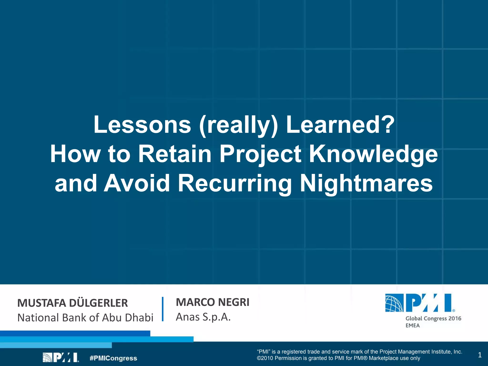 The document discusses knowledge management and lessons learned processes. It begins with introductions of the presenters and an overview of the agenda. It then discusses definitions of knowledge and knowledge management, and different knowledge management models. The document focuses on lessons learned processes, presenting both the traditional process and a proposed improved five-step process of collection, prioritization, documentation, communication and assimilation. For each step, common practices, potential traps, and remedies are discussed. The document concludes with a case study overview of knowledge management in the construction industry.