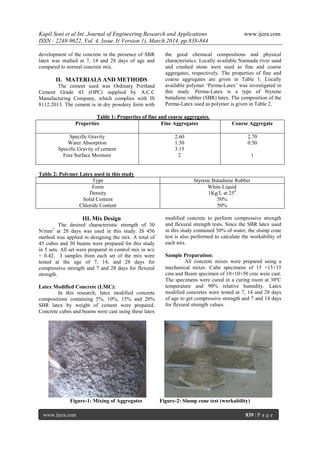 This research investigates the performance of styrene-butadiene rubber (SBR) latex in cement concrete mixes, demonstrating that SBR latex enhances compressive and flexural strength at 28 days while showing initial negative effects at earlier stages. The study established that incorporating 15% SBR latex by weight of cement yields the best performance, improving workability and reducing water ingress. The findings suggest the potential for SBR-modified concrete to reduce pavement thickness requirements, making it a more economical choice for construction.