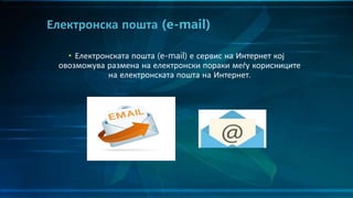 • Електронската пошта(e-mail) е сервис на Интернет кој