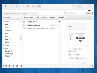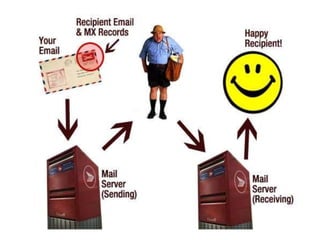 The document discusses various email services including Gmail, Outlook (formerly Hotmail), Yahoo Mail, and Zoho Mail, outlining their features and functionalities. It describes how email works, highlighting the sending process via SMTP, as well as comparing storage capacities, privacy policies, and user interface advantages of each service. The conclusion emphasizes that the choice of email service depends on personal preference, as all serve the primary function of sending and receiving emails.