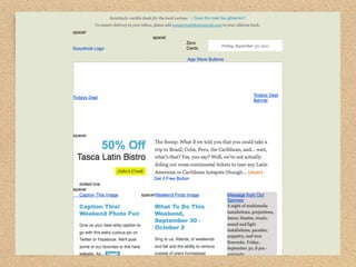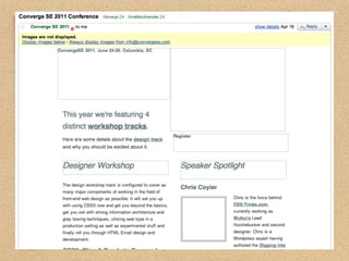 The document discusses the importance of email marketing, highlighting that 92% of internet users utilize email compared to 65% for social networks. It emphasizes the advantages of using HTML emails, such as improved tracking and design flexibility, and outlines different types of emails like newsletters and transactional messages. Additionally, it touches on the significance of good email design, citing key elements that contribute to effective communication.