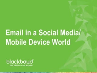 The document discusses email marketing strategies for nonprofits, emphasizing the importance of engaging content, personalized communication, and effective segmentation. It highlights trends such as growing email volume, the need for mobile-friendly designs, and the impact of email engagement on fundraising success. The insights are based on various studies and statistics, aiming to improve the effectiveness of email campaigns in a digital world.