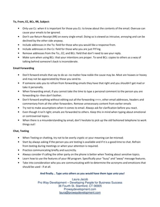 The document provides tips for effective email etiquette: