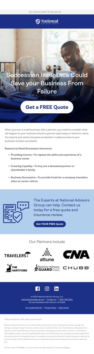 Email 6; Part of 6-email acquisition campaign for Key Man Commercial Business Insurance.