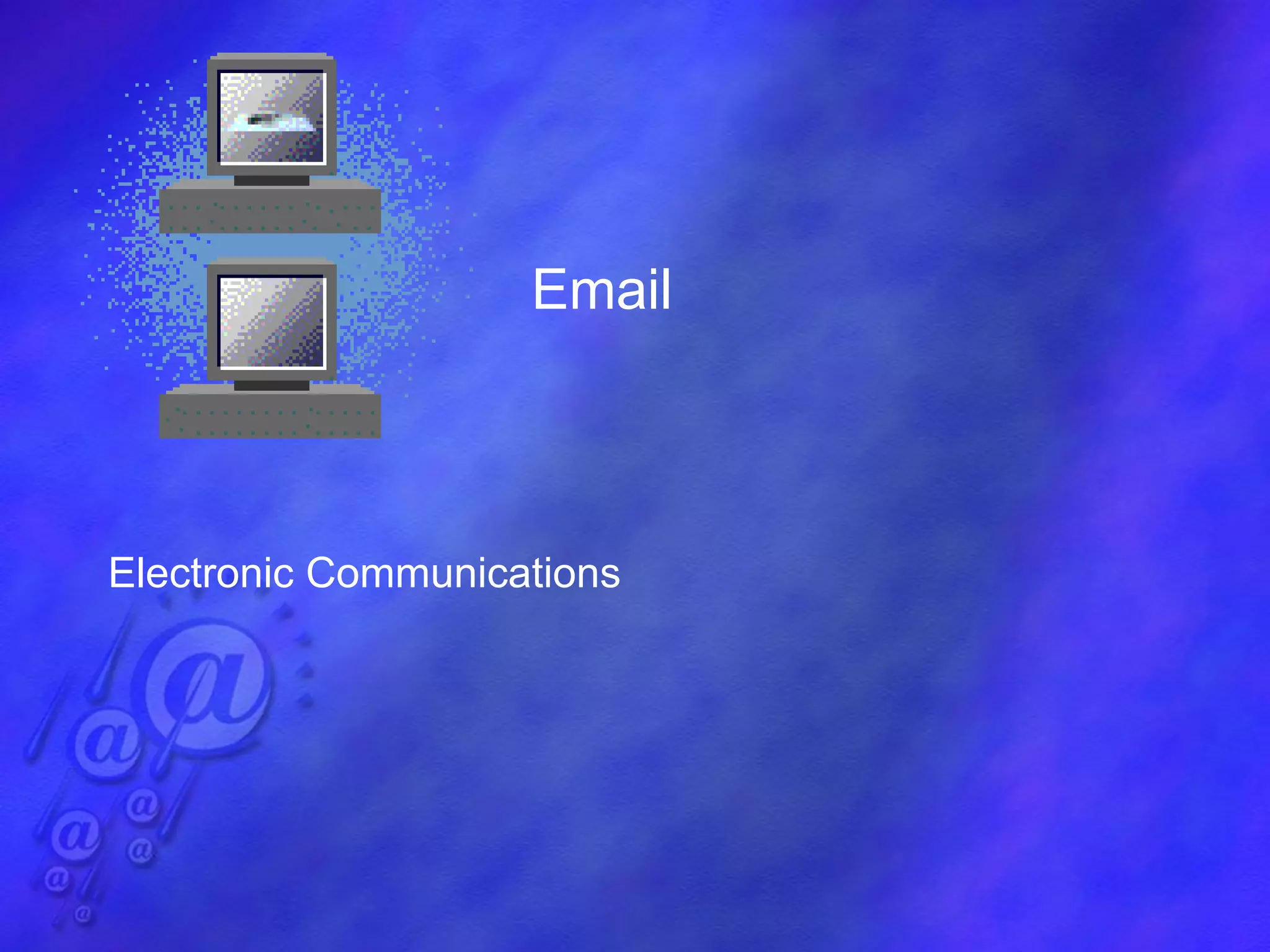 This document provides an overview of email including its definition, parts of an email, etiquette, security risks, and how to write effective emails. It discusses the key components of an email like the addressee, subject line, text, signature, and attachments. It emphasizes the importance of clarity, brevity, and knowing your audience when writing emails. It also outlines best practices for email security including using antivirus software and being cautious of emails from unknown senders.
