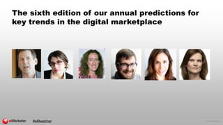 The document outlines key digital trends predicted for 2016, including the rise of voice consumer engagement, mobile payments, and increased consumer willingness to share data. It also addresses expected challenges like unresolved ad blocking and disagreements on viewability. Furthermore, it forecasts that mobile commerce will grow significantly, comprising 25% of US eCommerce sales, while digital ad spending is not anticipated to surpass TV ad spending that year.