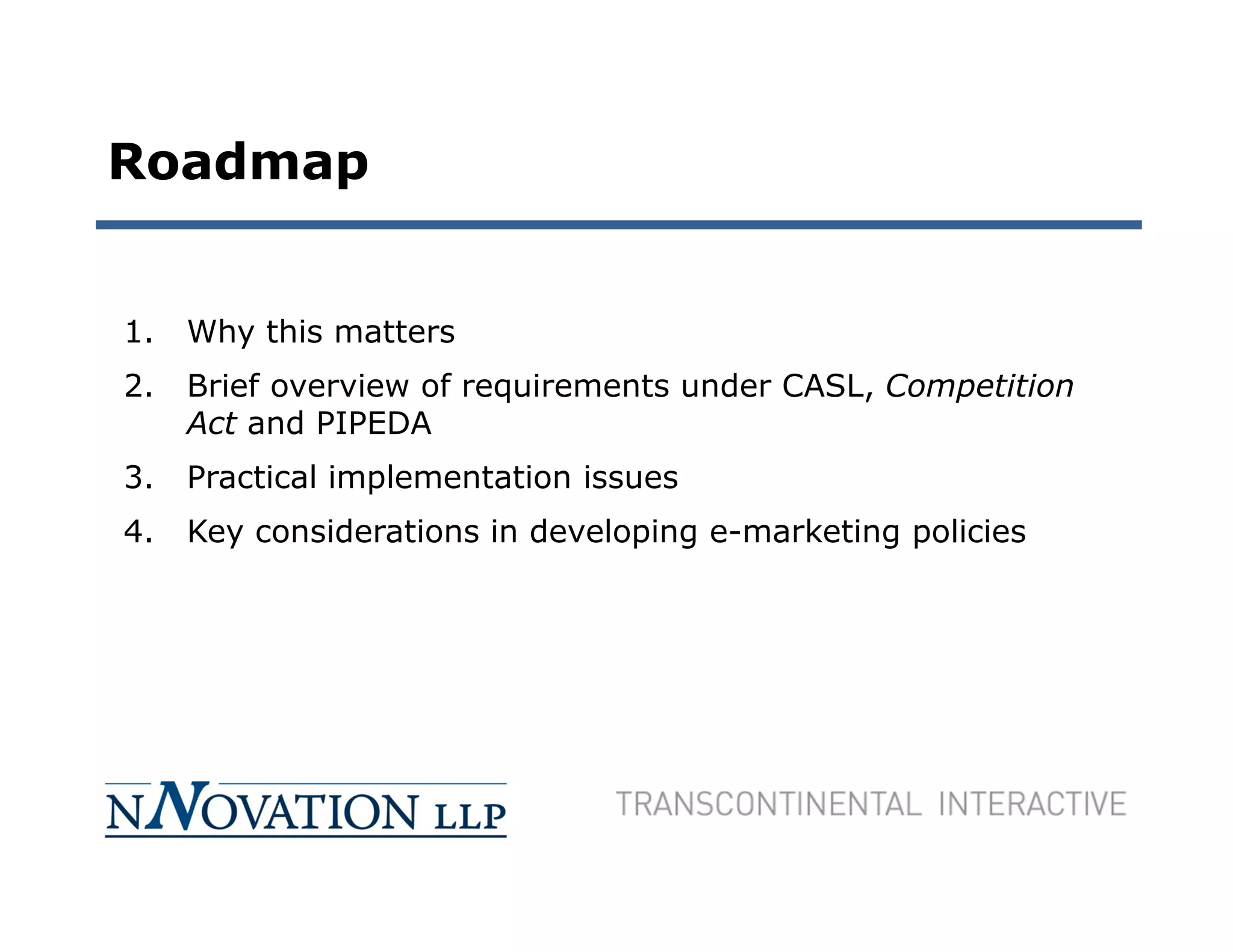 The document outlines a workshop focused on e-marketing policy development, highlighting the importance of compliance with Canada’s Anti-Spam Legislation (CASL), the Competition Act, and the Personal Information Protection and Electronic Documents Act (PIPEDA). It covers critical considerations for obtaining consent, identifying senders, managing unsubscribe mechanisms, and the implications of enforcement mechanisms. Additionally, practical recommendations for list management, marketing strategies, and how to navigate legal requirements are provided.