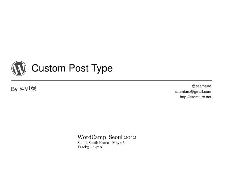 WordCamp Seoul 2012 - WordPress Custom Post type