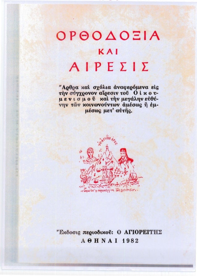 ΟΡΘΟΔΟΞΙΑ ΚΑΙ ΑΙΡΕΣΙΣ - ΕΚΔΟΣΕΙΣ ΠΕΡΙΟΔΙΚΟΥ Ο ΑΓΙΟΡΕΙΤΗΣ - ΑΘΗΝΑΙ 1982