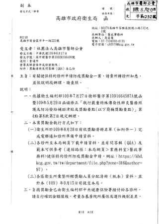 診所、衛生所獎勵金之獎勵人員清冊(紙本繳交衛生所)